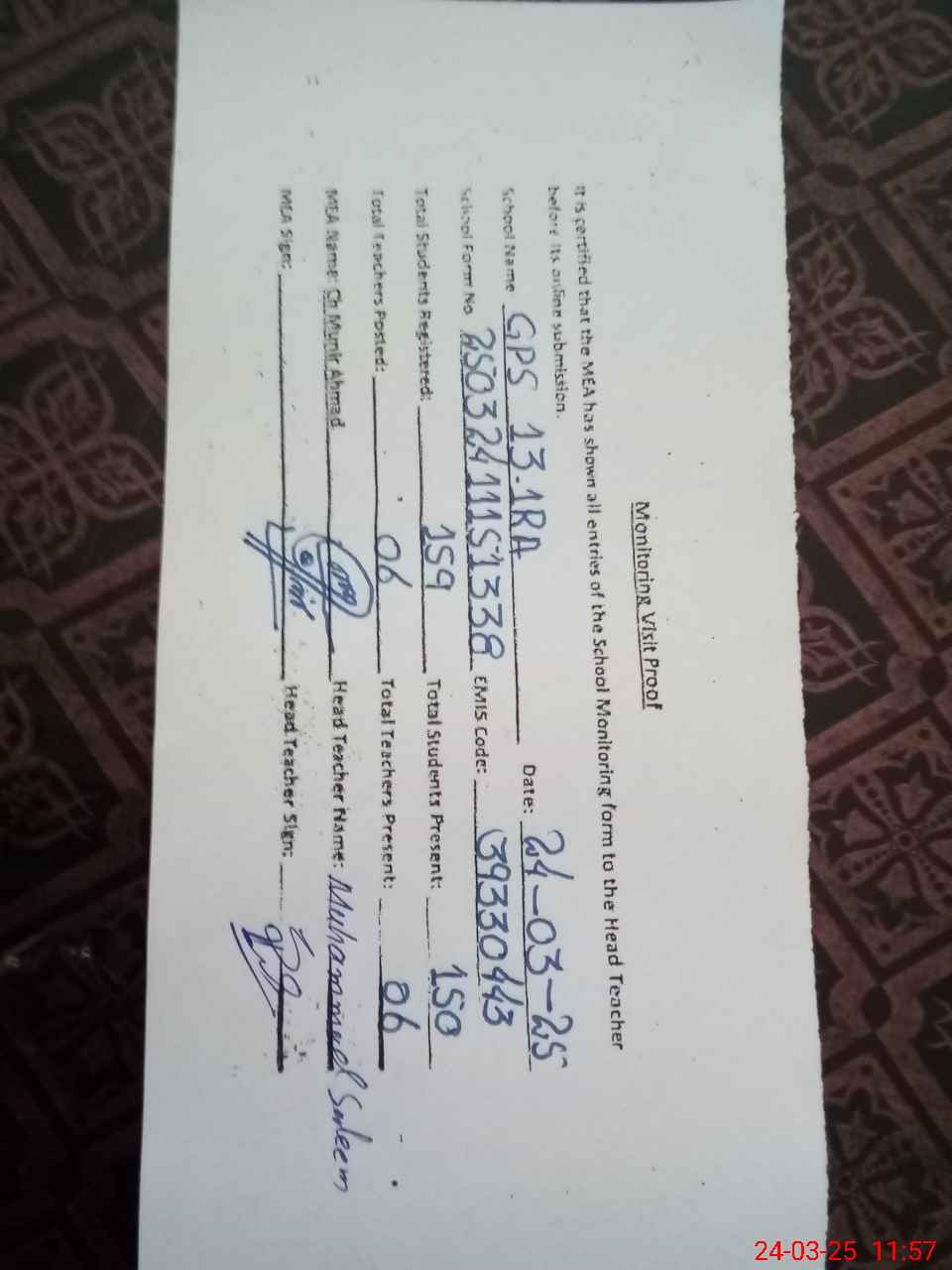 | EMIS Code: 39330443 | Name of School: GPS CHAK NO.13/1-RA | |||
