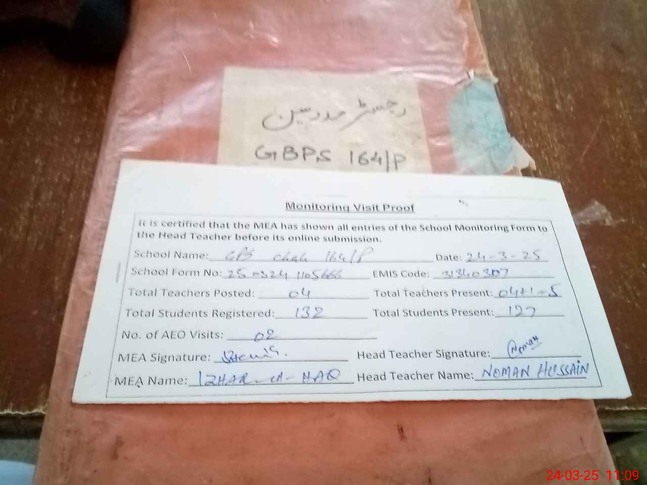 | EMIS Code: 31340307 | Name of School: GPS CHAK NO 164/P | |||