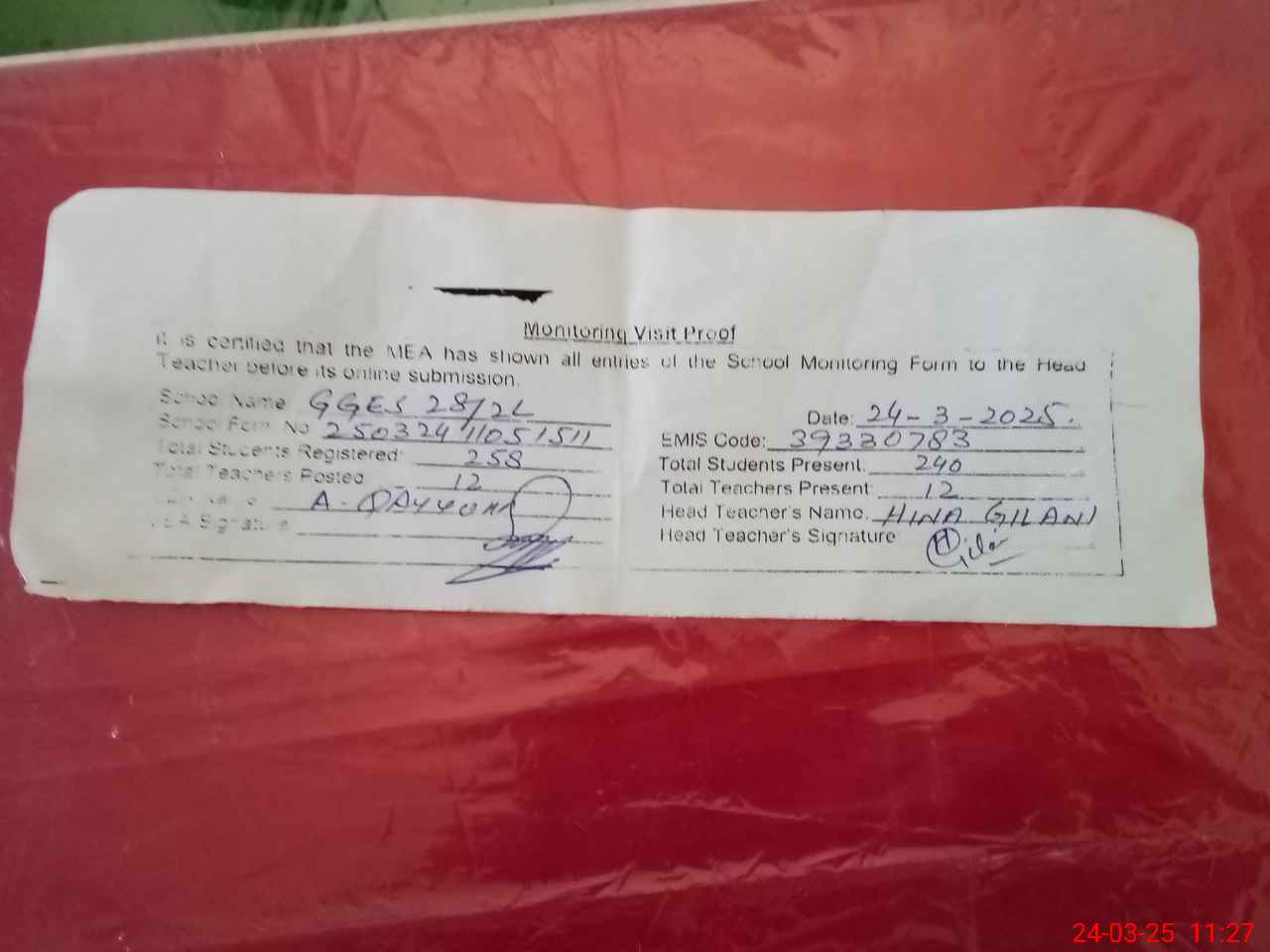 | EMIS Code: 39330783 | Name of School: GGES 28/2L | |||
