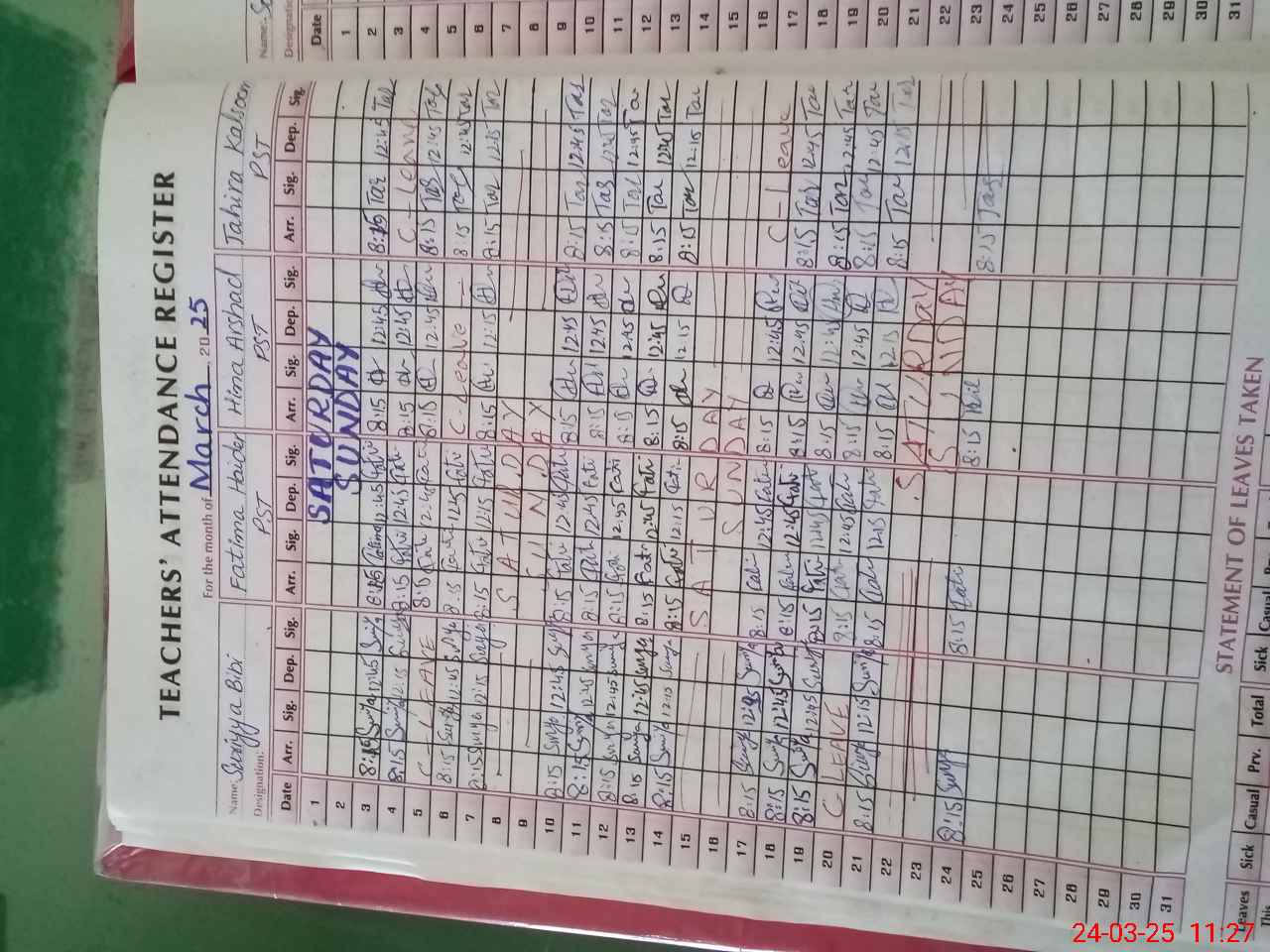 | 35**** | Fa**** Fe**** Ch**** | 1 | 2 | 0 | 0 | 0 | 0 | 0 | 0 | 0 | 2 | Exam Duty | |