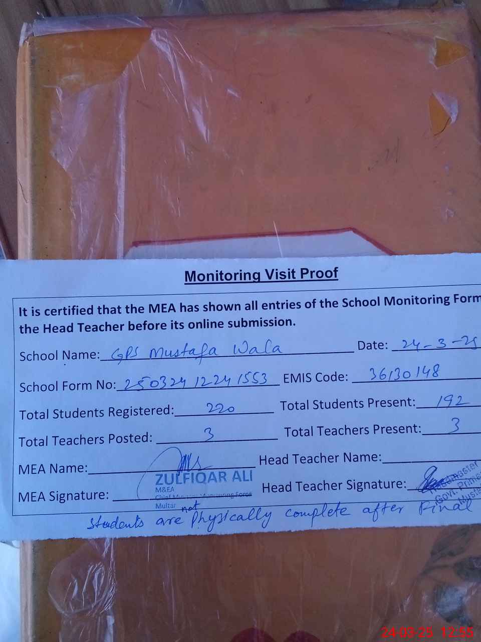 | EMIS Code: 36130148 | Name of School: GPS MUSTAFA WALA | |||