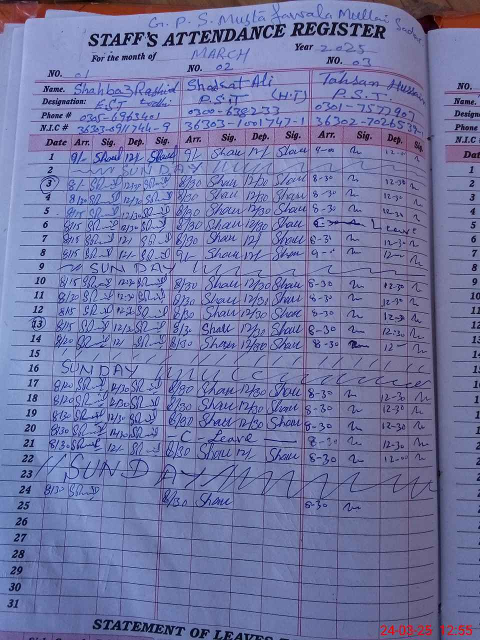 | Name: SH**** AL**** Designation: (School Headmaster's/Headmistress's) PST HEAD MASTER Phone/Cell Number: 03**** |