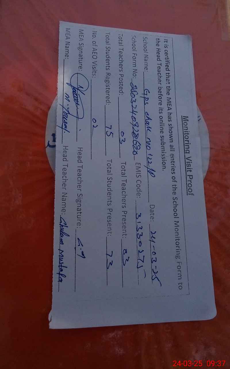 | EMIS Code: 31330275 | Name of School: GPS CHAK NO. 122/P | |||