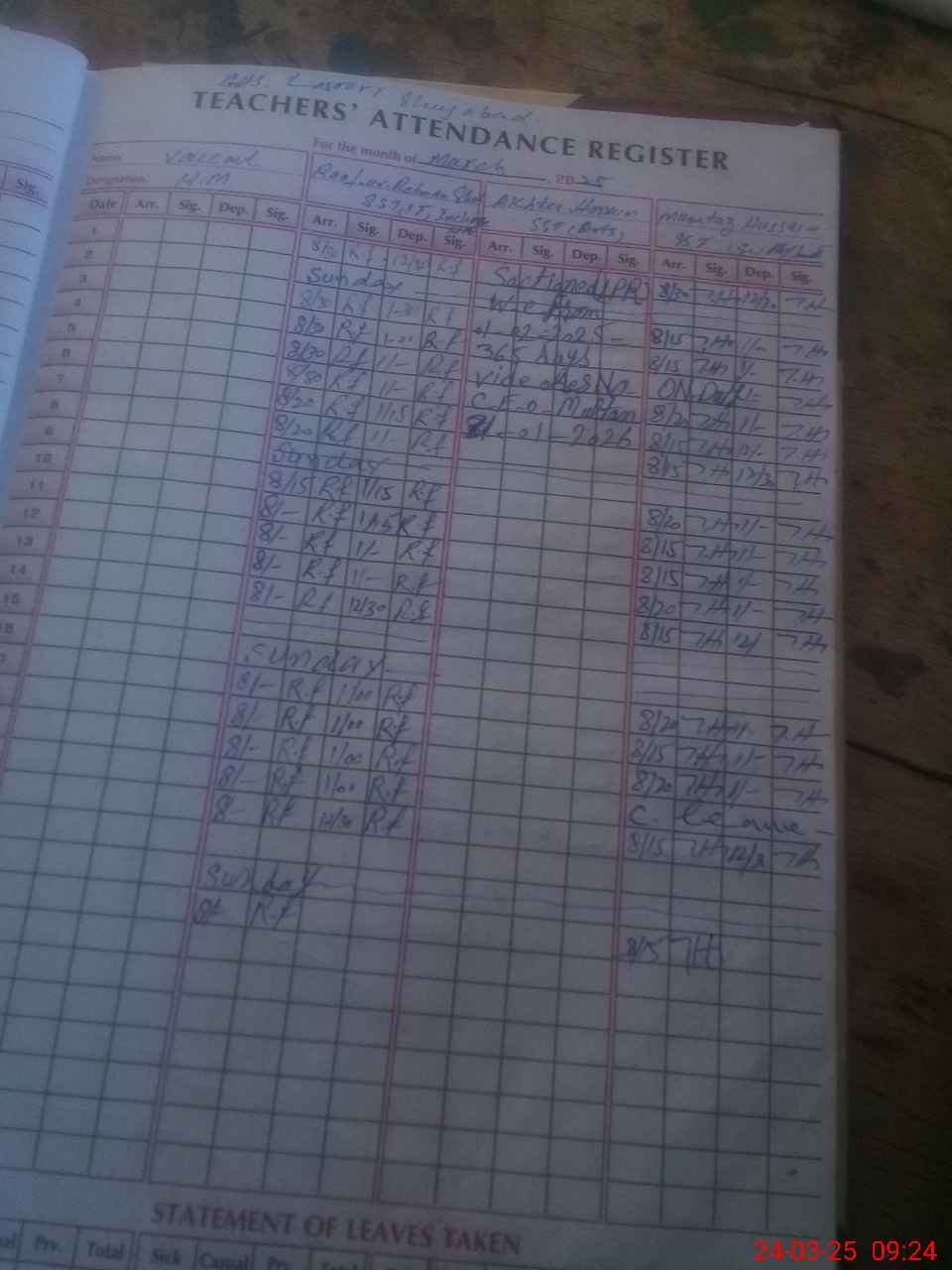 | Leave | Duty | Absent | Maternity | Medical | Ex- Pak |