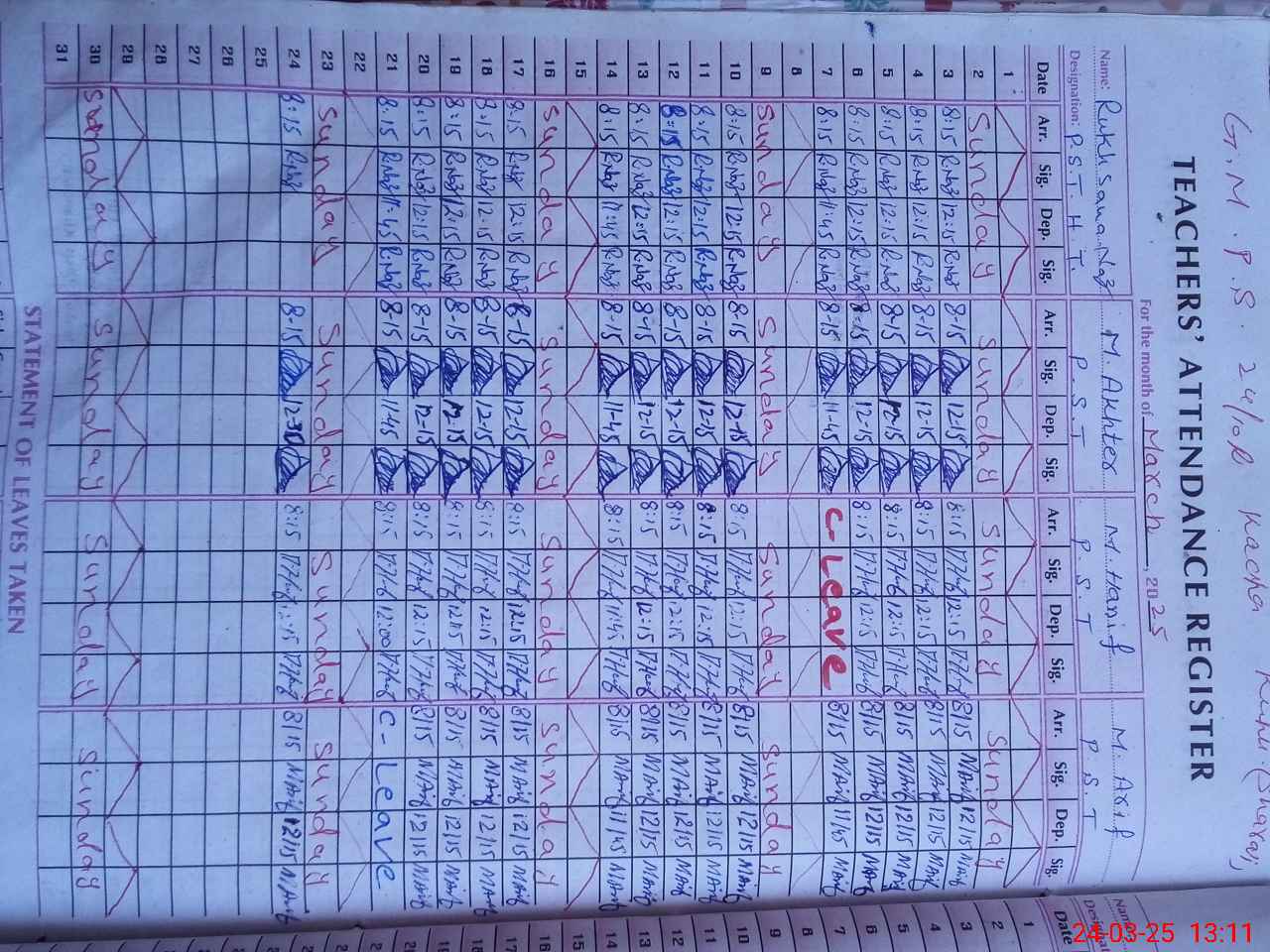 | Remarks (Use Separate Page if Required): After final exam attendance taken from roznamcha NSB and FTF record not available in the school Books record not available in the school | |||||