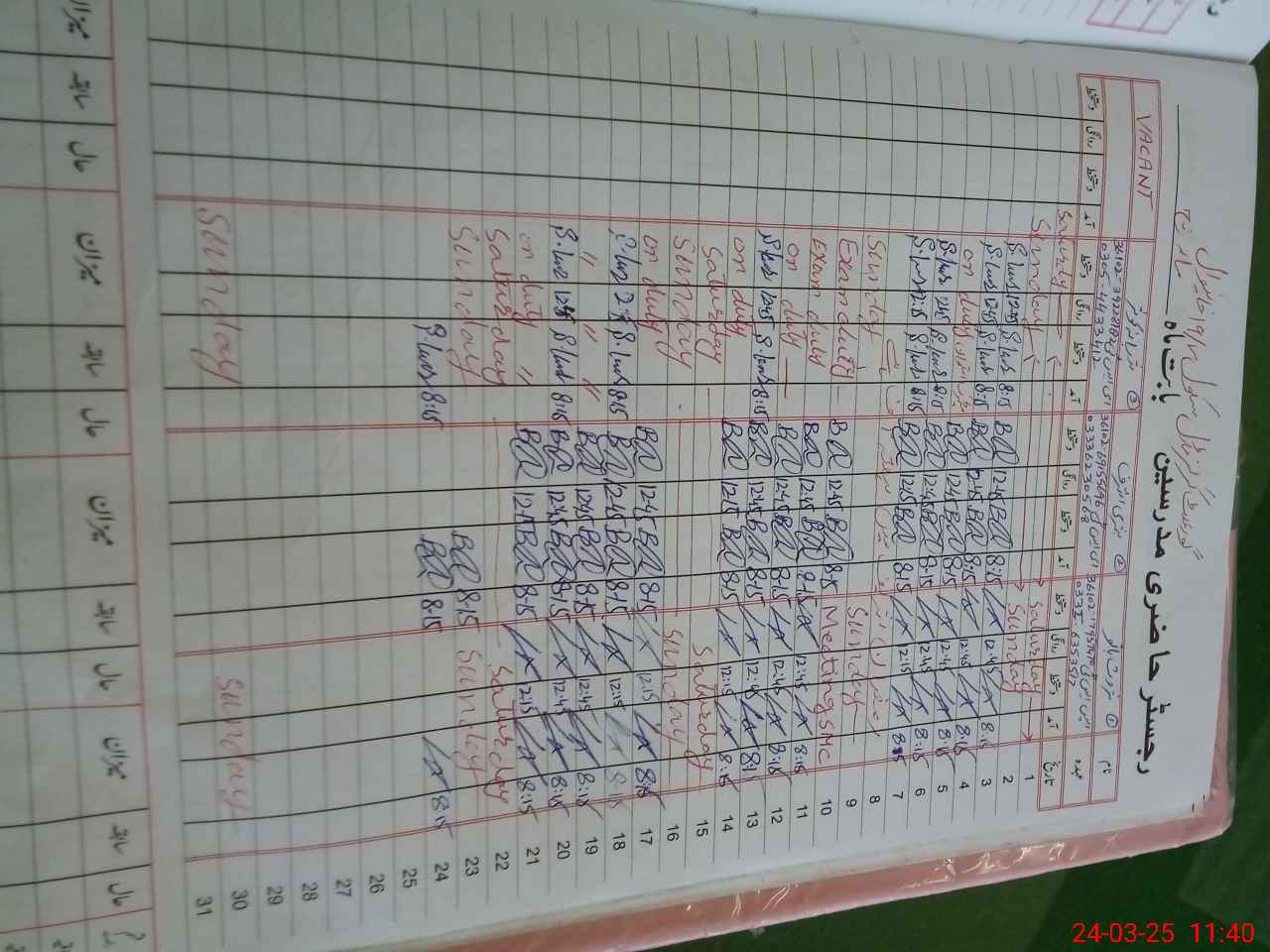 | CNIC | Full Name | Designation | R/C | Absence During Last Calender Month |
