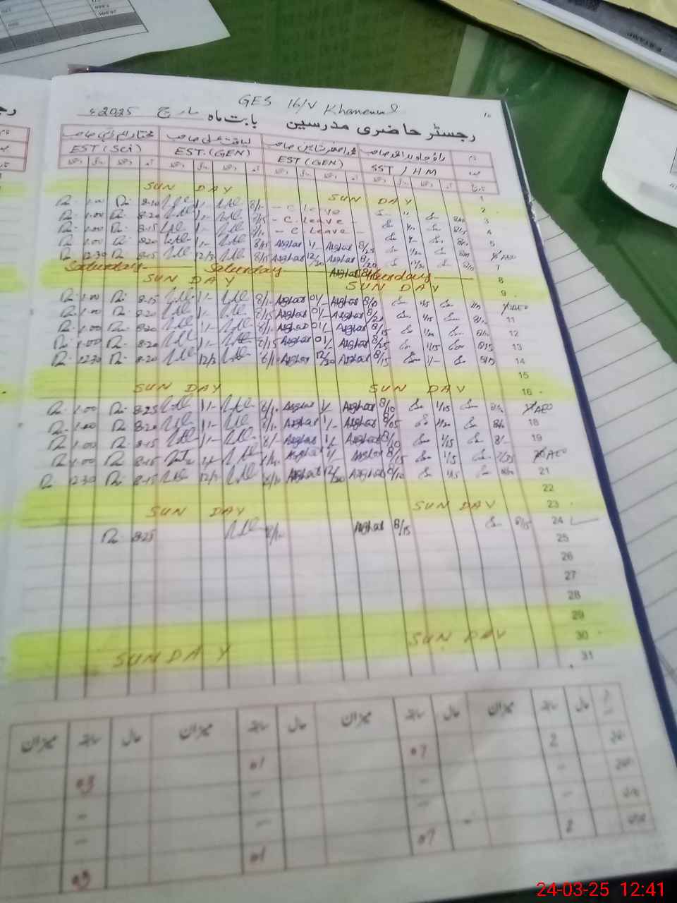 | CNIC | Full Name | Designation | R/C | Absence During Last Calender Month |