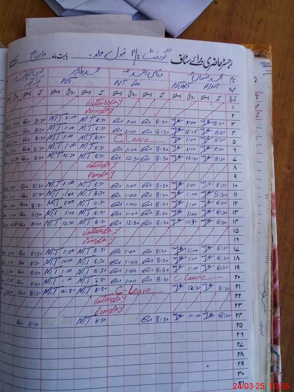 | Leave | Duty | Absent | Maternity | Medical | Ex- Pak |
