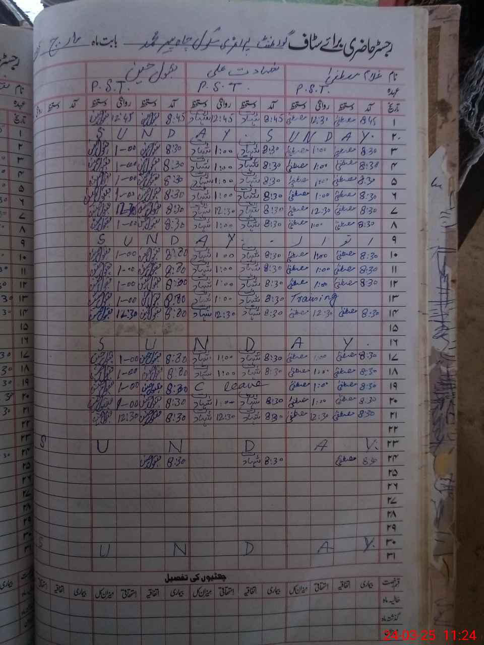 | CNIC | Full Name | Designation | R/C | Absence During Last Calender Month |