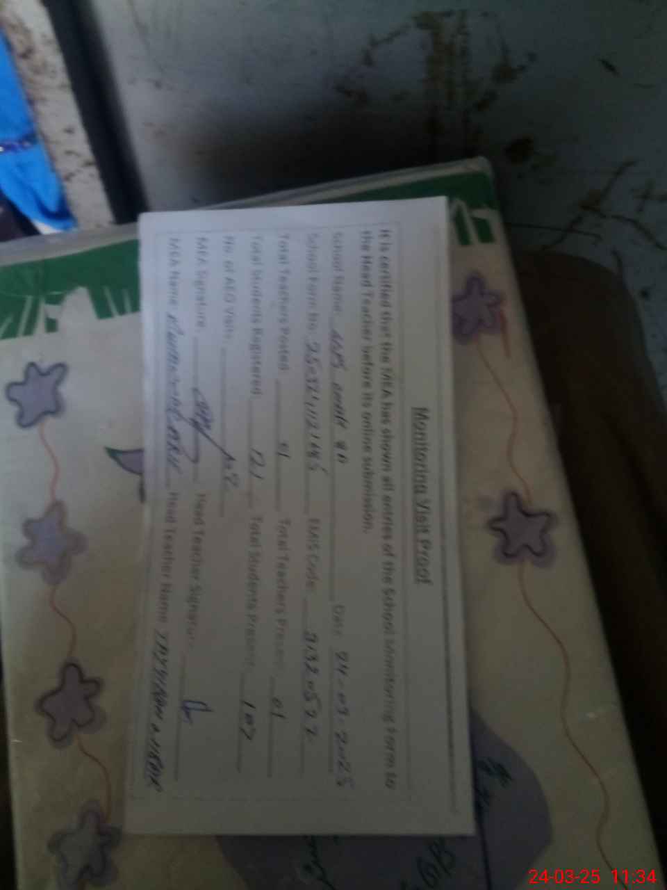| Attendance Register | Head Teacher | MEA with School | Visit Proof |