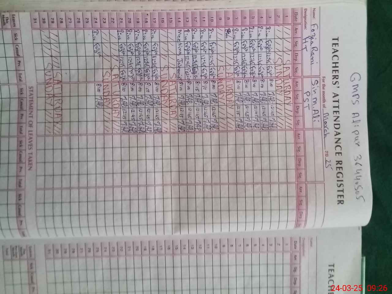| EMIS Code: 36440505 | Name of School: GMPS ALI PUR | |||