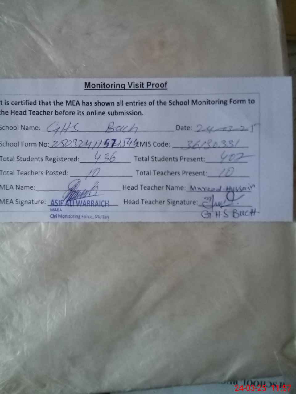 | EMIS Code: 36130331 | Name of School: GHS BUCH P/O KHOKHAR | |||