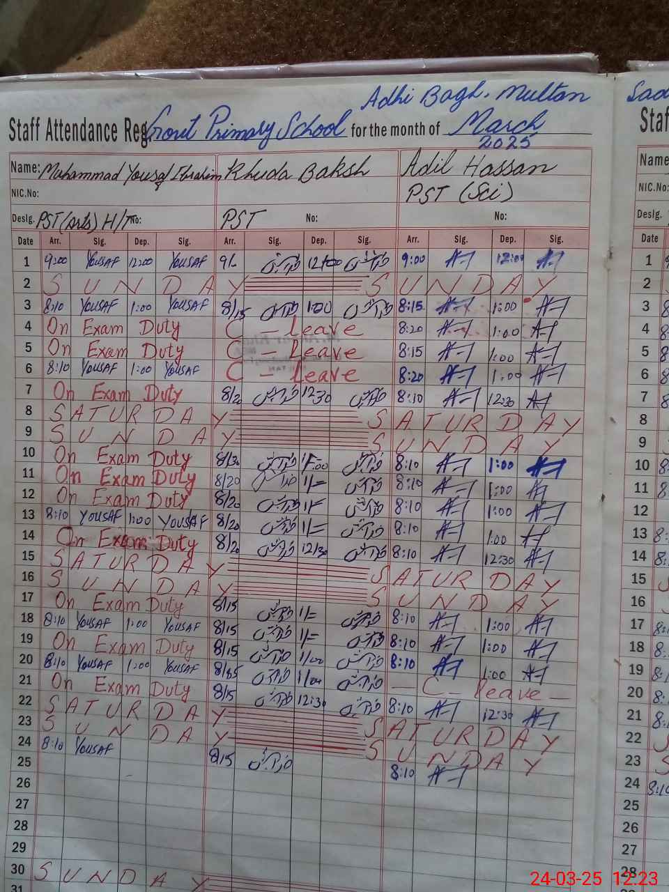 | Leave | Duty | Absent | Maternity | Medical | Ex- Pak |