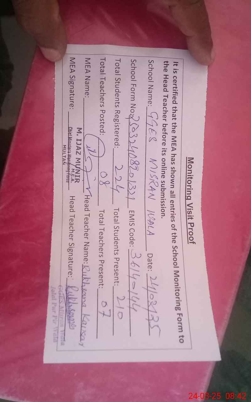 | EMIS Code: 36140144 | Name of School: GGES MISRAN WALA | |||