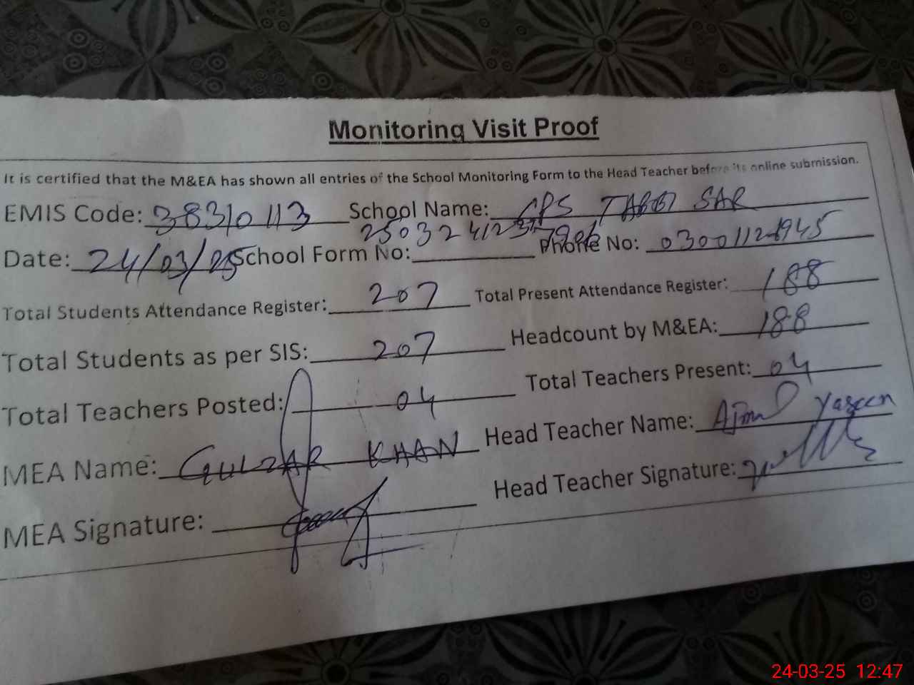 | EMIS Code: 38310113 | Name of School: GPS TABBI SAR | |||