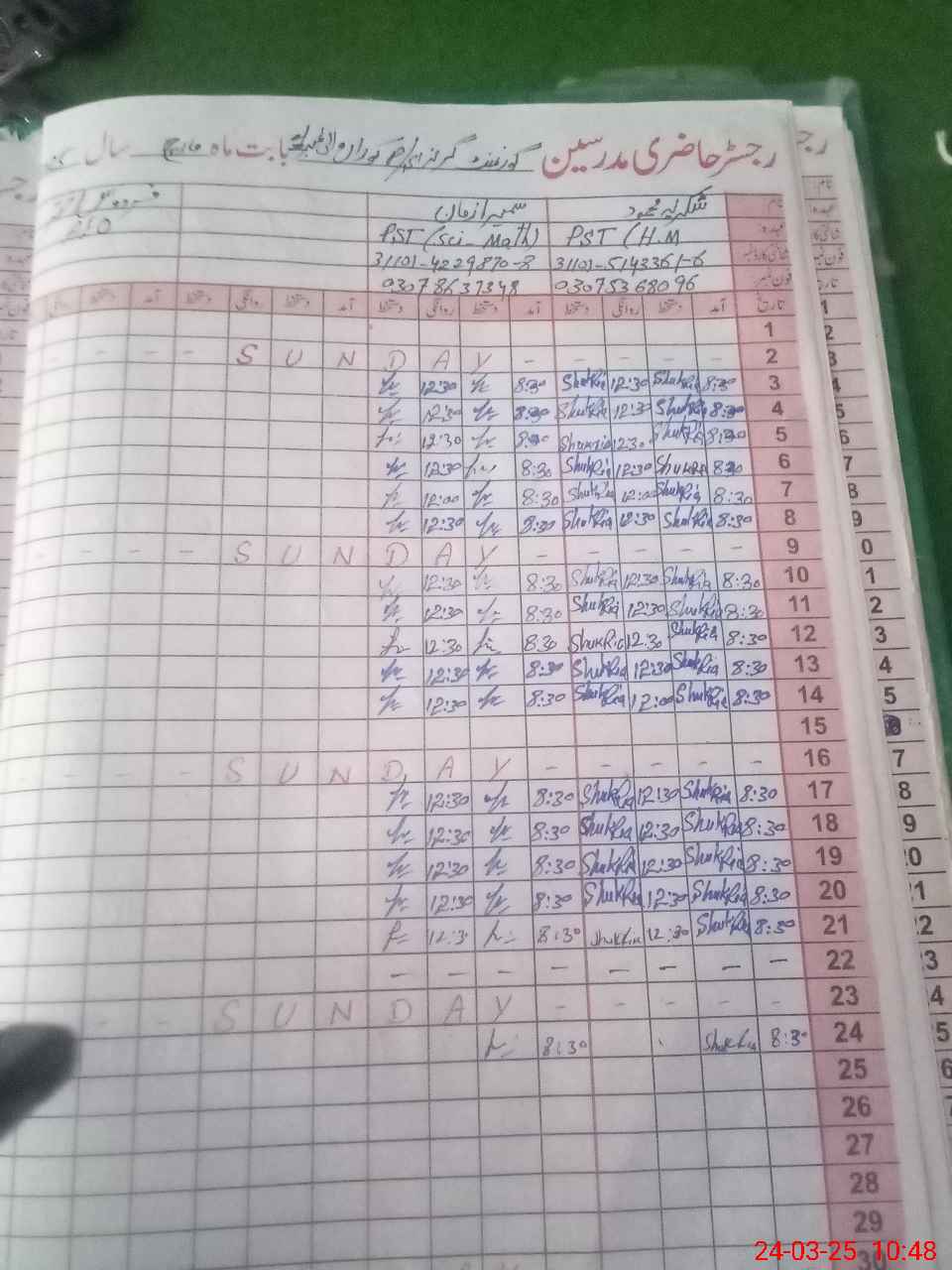 | Name: Sh**** ME**** Designation: (School Headmaster's/Headmistress's) PST Phone/Cell Number: 03**** |