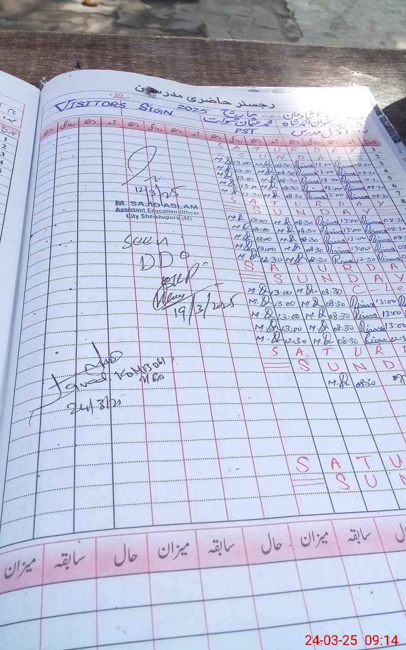 | District: SHEIKHUPURA | Tehsil: SHEIKHUPURA | Markaz: CITY SHEIKHUPURA-MALE | Level: Primary | |