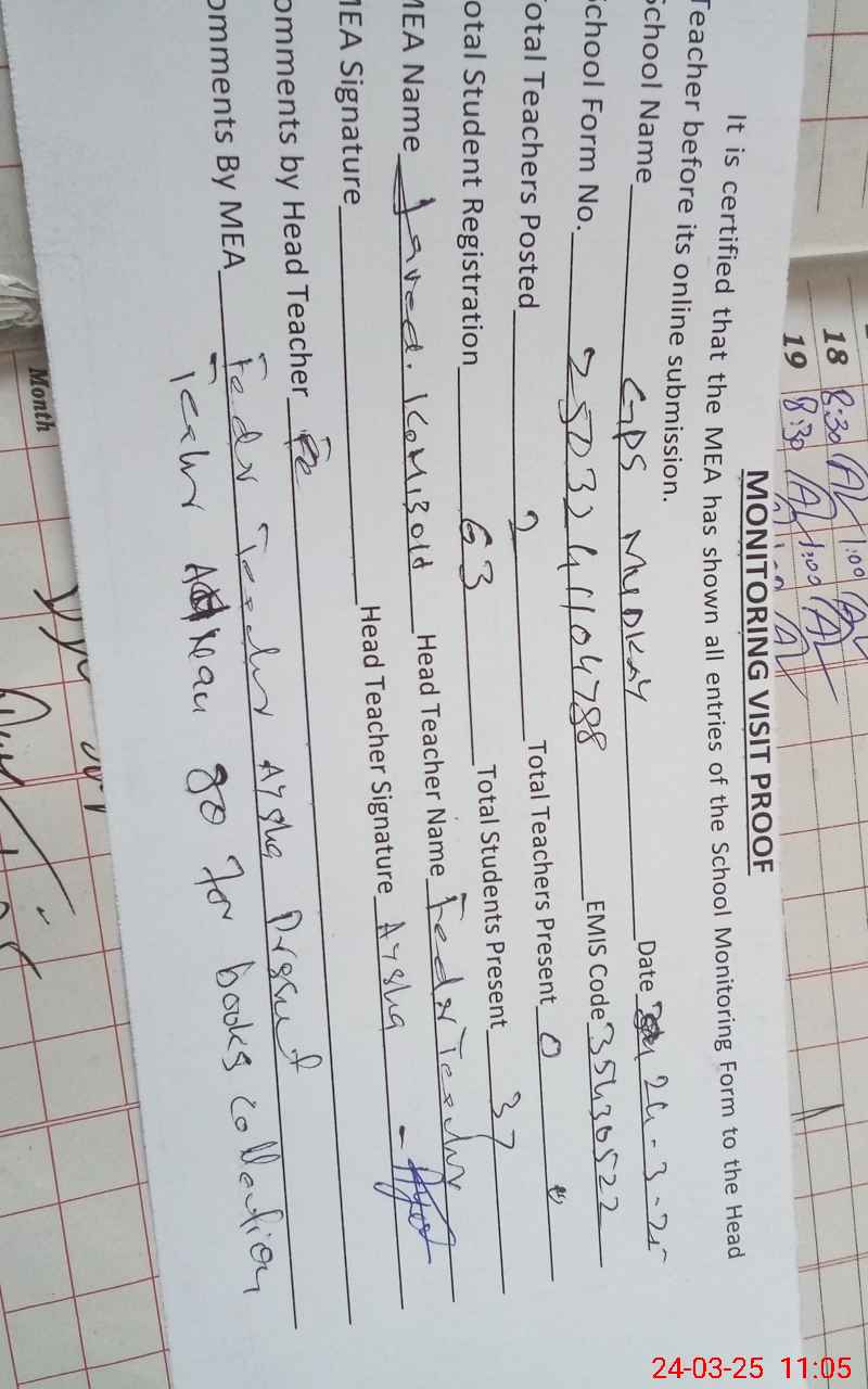 | EMIS Code: 35430522 | Name of School: GPS MUDKAY | |||