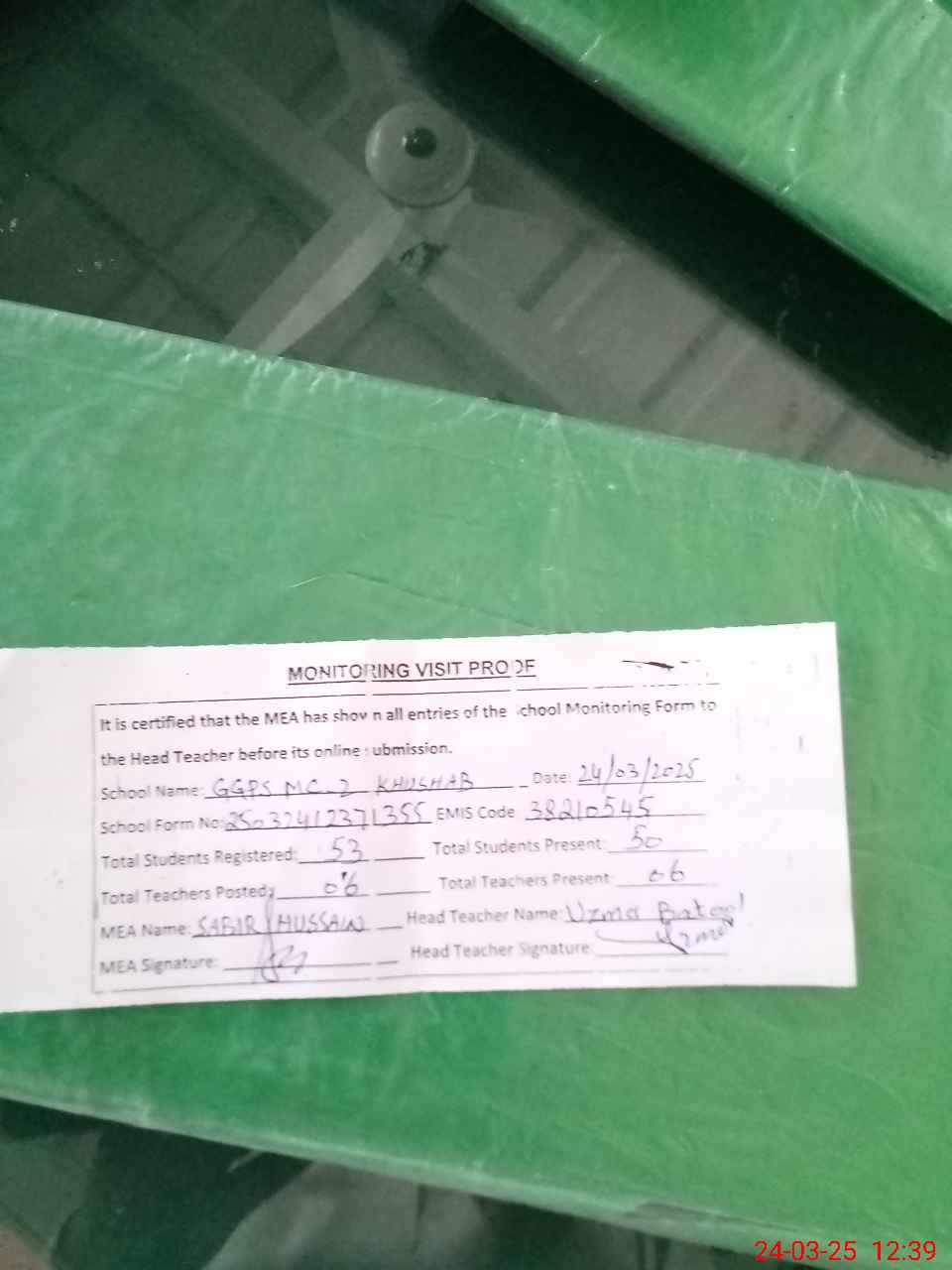 | EMIS Code: 38210545 | Name of School: GGPS MC NO.2 KHUSHAB | |||