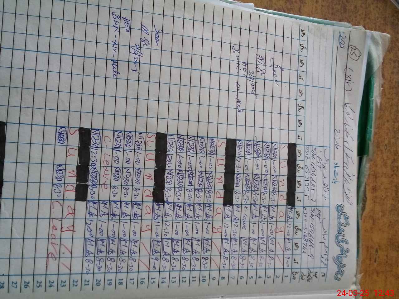 | Leave | Duty | Absent | Maternity | Medical | Ex- Pak |