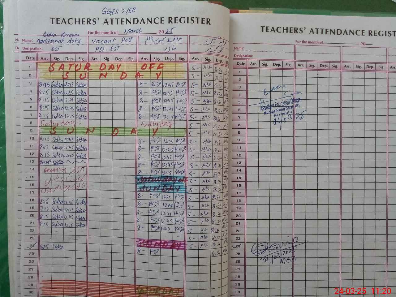 | Name: FE**** ZA**** Designation: (School Headmaster's/Headmistress's) SST(BIO) Phone/Cell Number: 03**** |