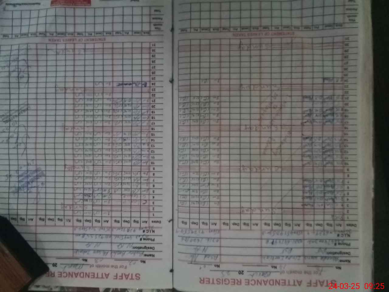 | CNIC | Full Name | Designation | R/C | Absence During Last Calender Month |