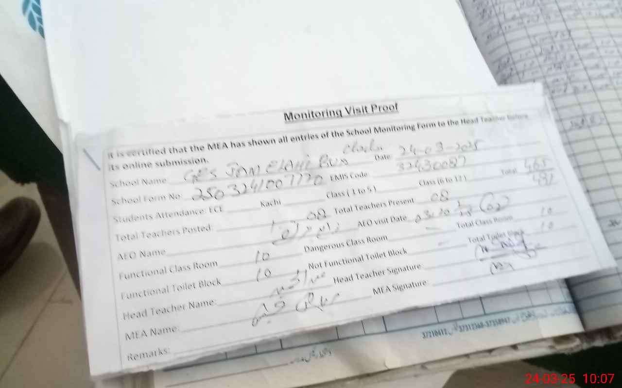 | EMIS Code: 32430087 | Name of School: GES BASTI JAM ELLAHI BUX CHACHAR | |||