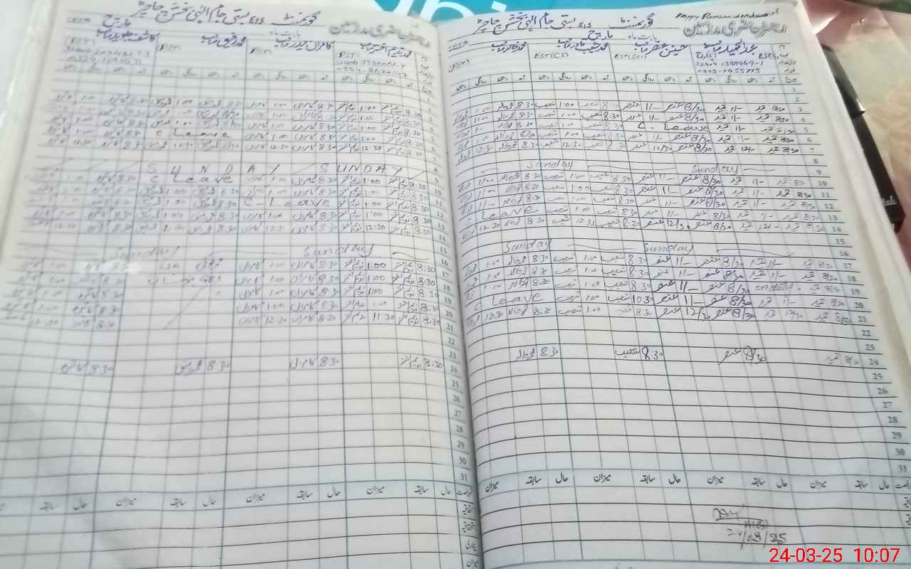 | CNIC | Full Name | Designation | R/C | Absence During Last Calender Month |