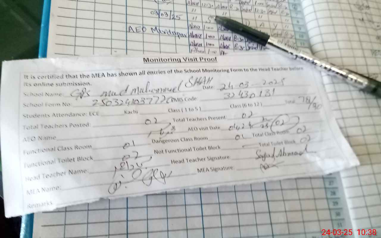 | EMIS Code: 32430131 | Name of School: GPS MUD MUHAMMAD SHAH | |||