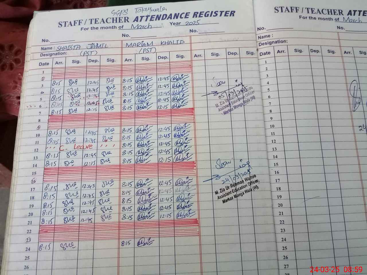 | Name: Sh**** Ja**** Designation: (School Headmaster's/Headmistress's) PST Phone/Cell Number: 03**** |