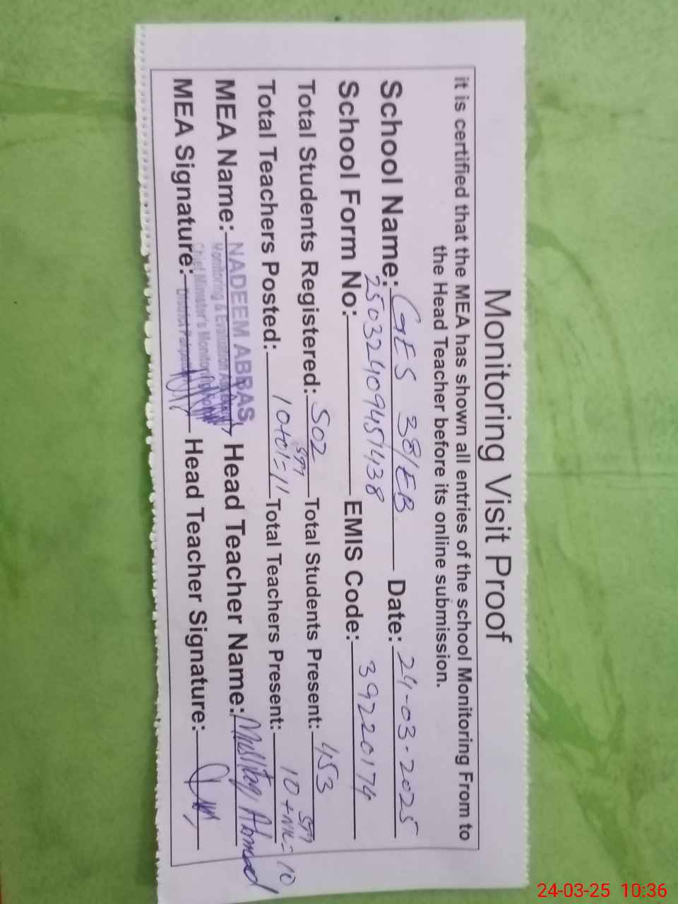 | EMIS Code: 39220174 | Name of School: GES 38 EB | |||