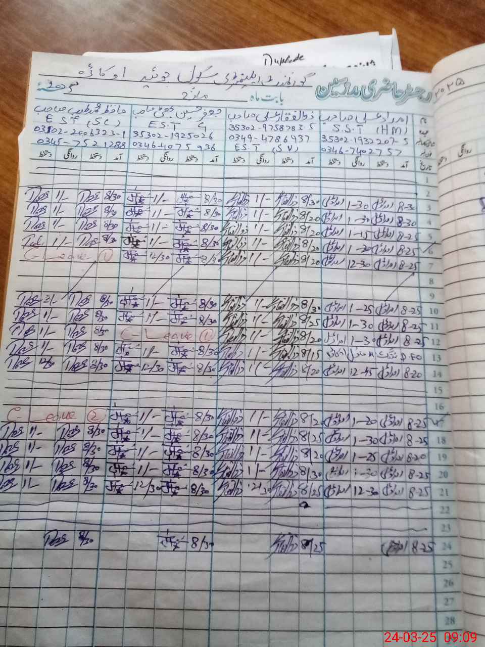 | 35**** | Gh**** Mu**** | PST | Regular | 2 | 0 | 0 | 0 | 0 | 0 | 0 | 0 | 2 | Exam Duty |