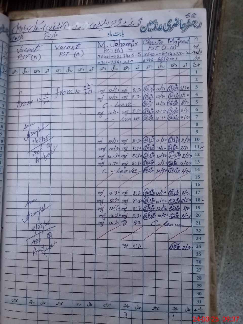 | Name: SH**** MA**** Designation: (School Headmaster's/Headmistress's) PST Phone/Cell Number: 03**** |
