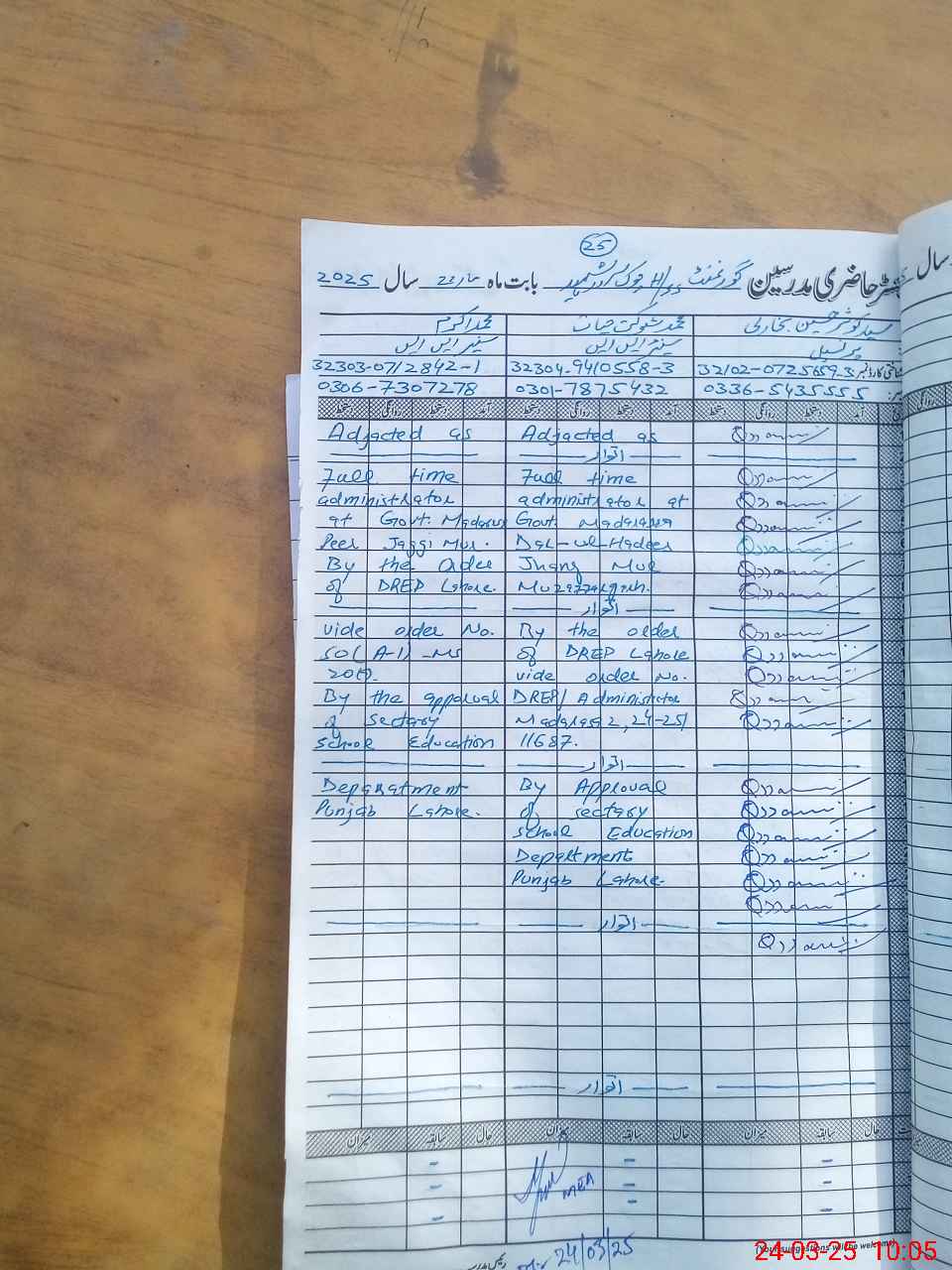 | Name: Ta**** Az**** Designation: (School Headmaster's/Headmistress's) PRINCIPAL Phone/Cell Number: 03**** |