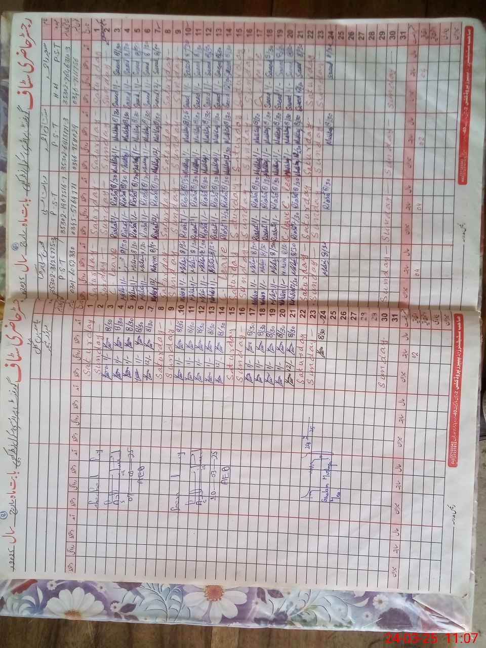 | CNIC | Full Name | Designation | R/C | Absence During Last Calender Month |