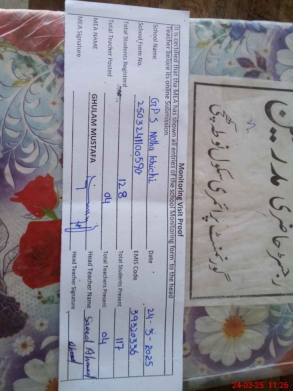 | EMIS Code: 39320336 | Name of School: GPS NOTHA KHICHI | |||