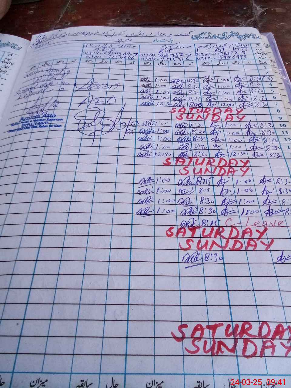 | Leave | Duty | Absent | Maternity | Medical | Ex- Pak |