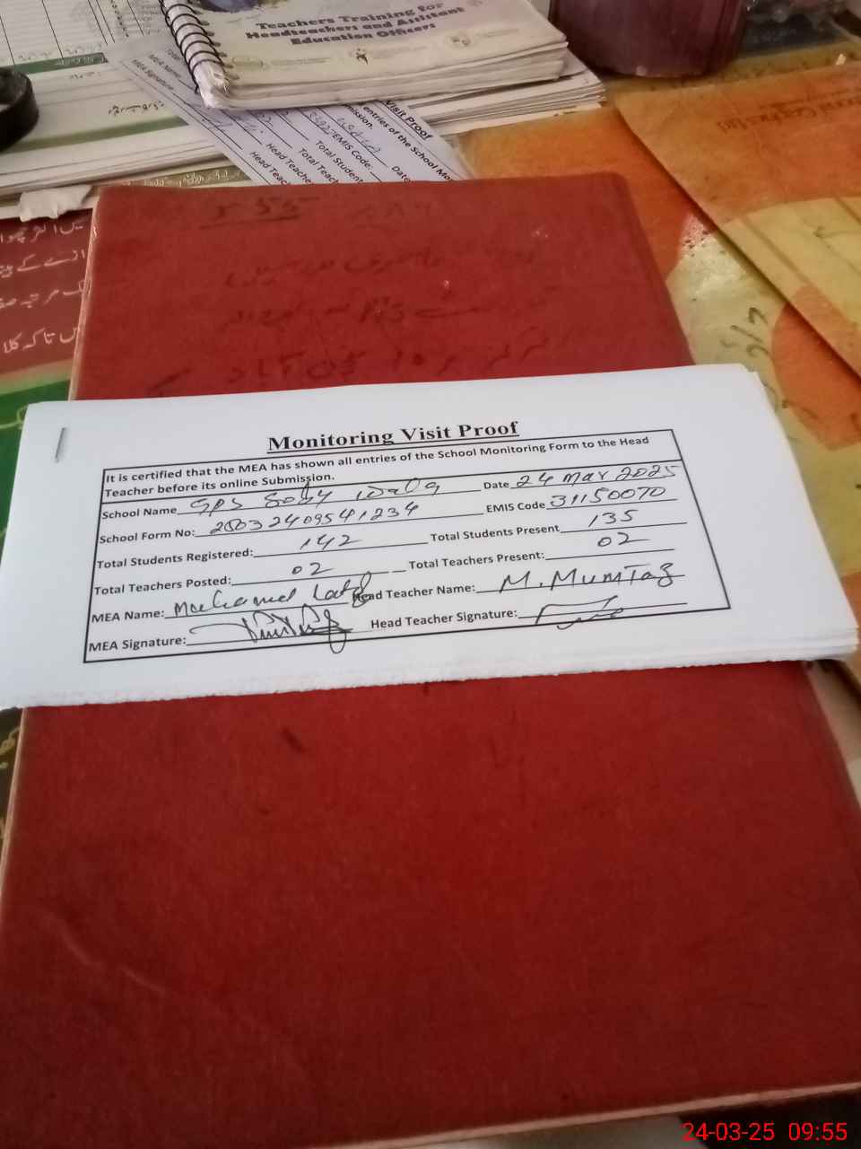 | Attendance Register | Head Teacher | MEA with School | Visit Proof |