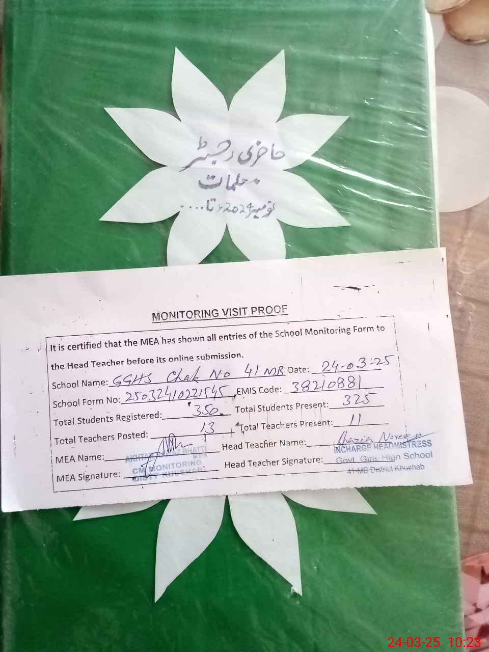 | EMIS Code: 38210881 | Name of School: GGHS CHAK NO 41 MB | |||