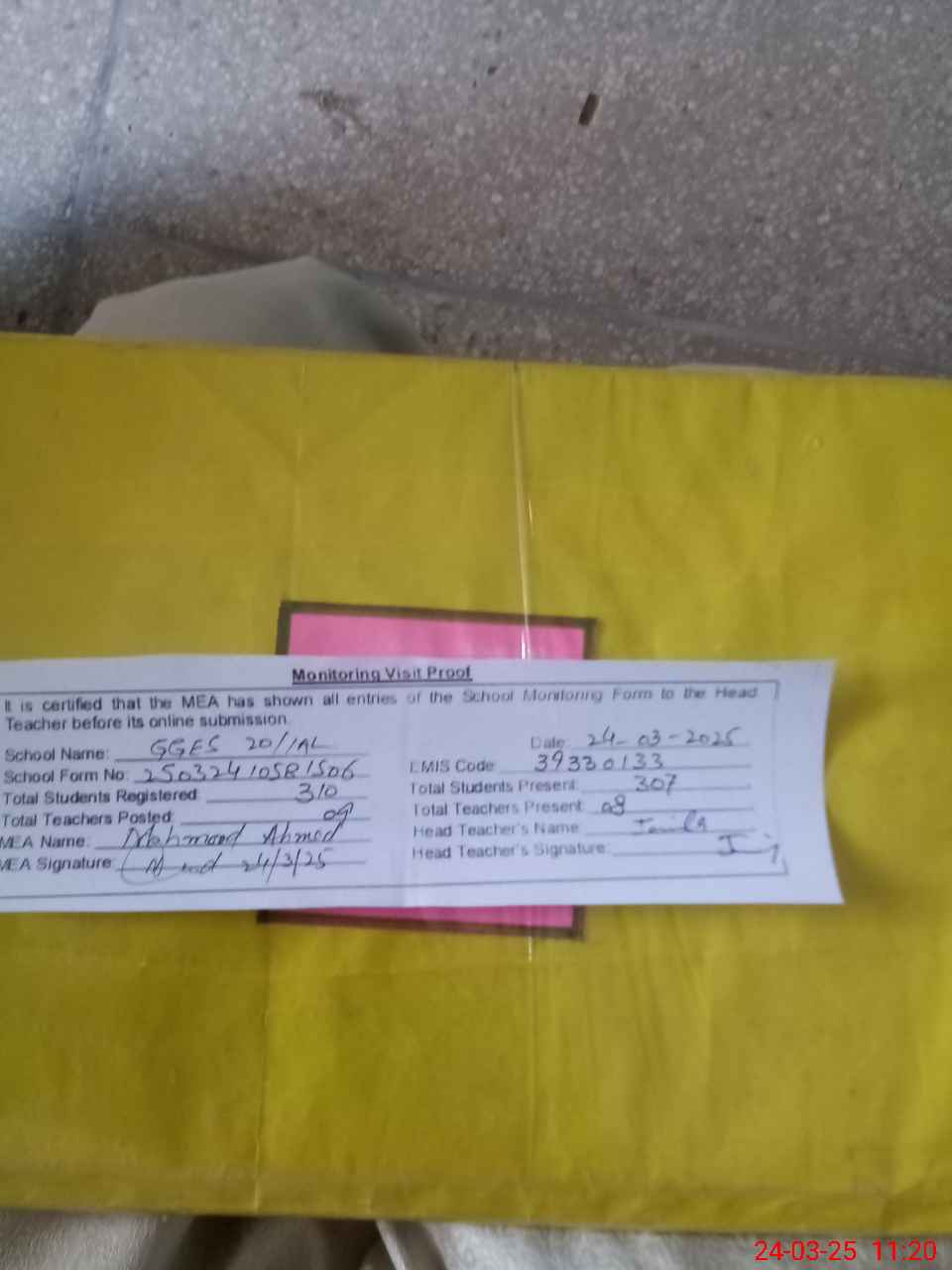 | EMIS Code: 39330133 | Name of School: GGHS 20/1-AL | |||