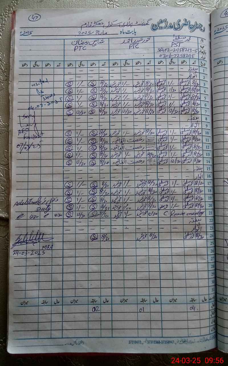 | Name: MU**** MU**** Designation: (School Headmaster's/Headmistress's) PST Phone/Cell Number: 03**** |