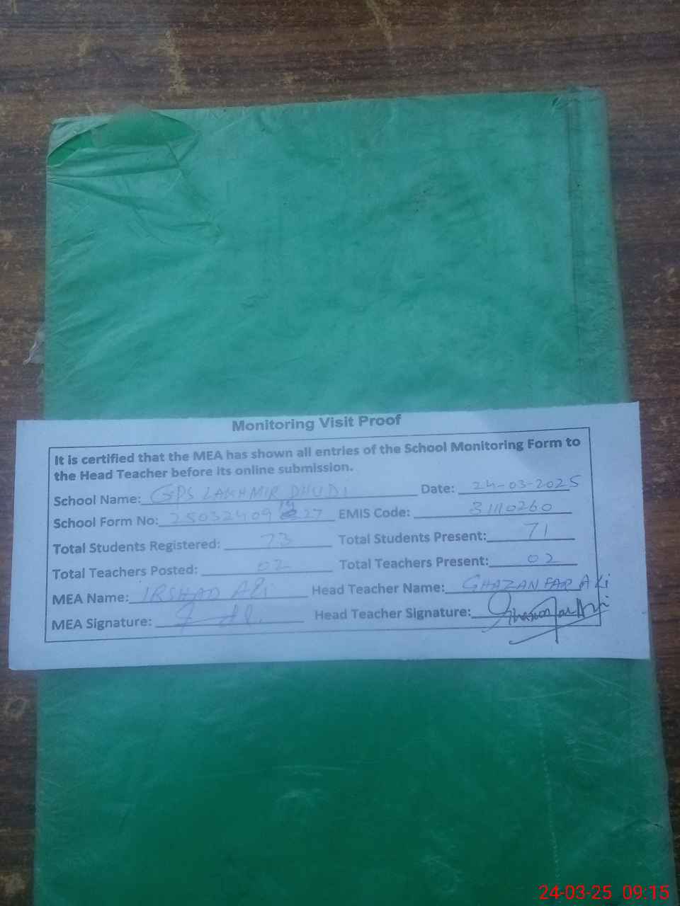 | EMIS Code: 31110260 | Name of School: GPS LAKHMIR DHUDI | |||