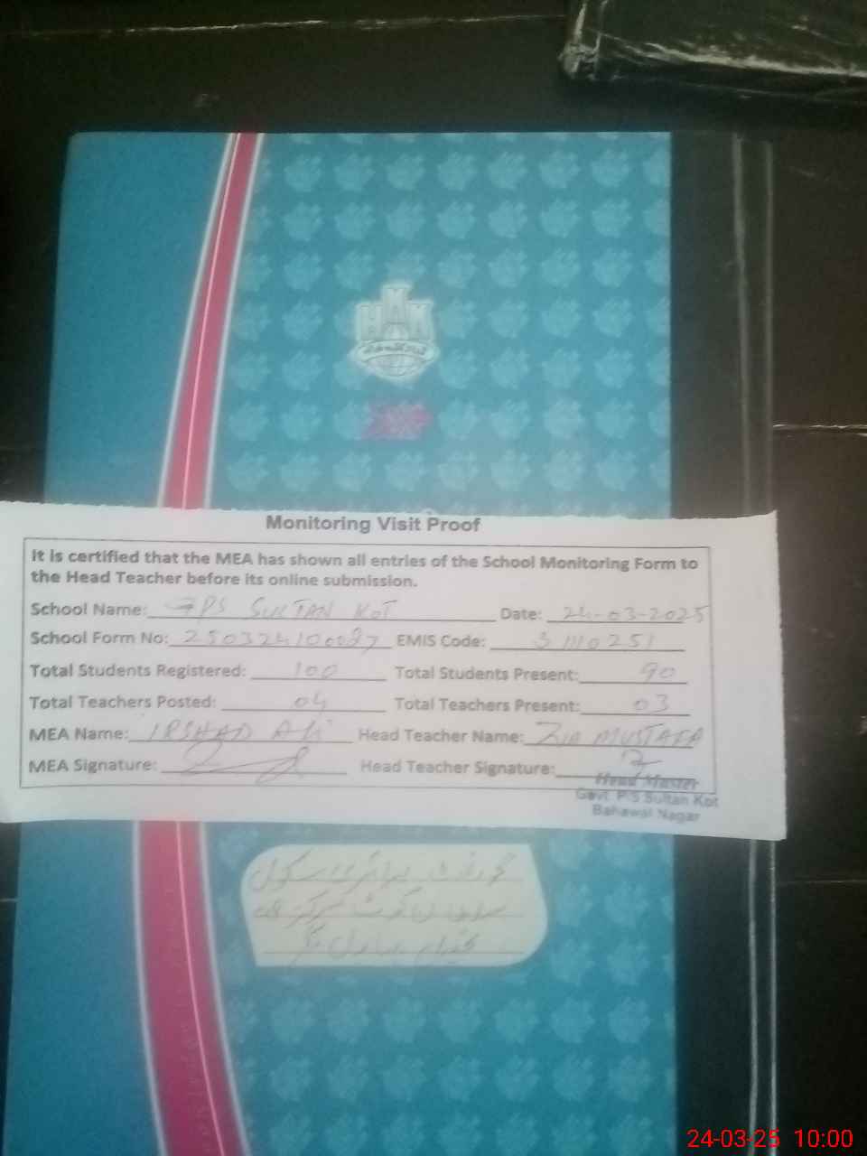 | EMIS Code: 31110251 | Name of School: GPS SULTAN KOT | |||