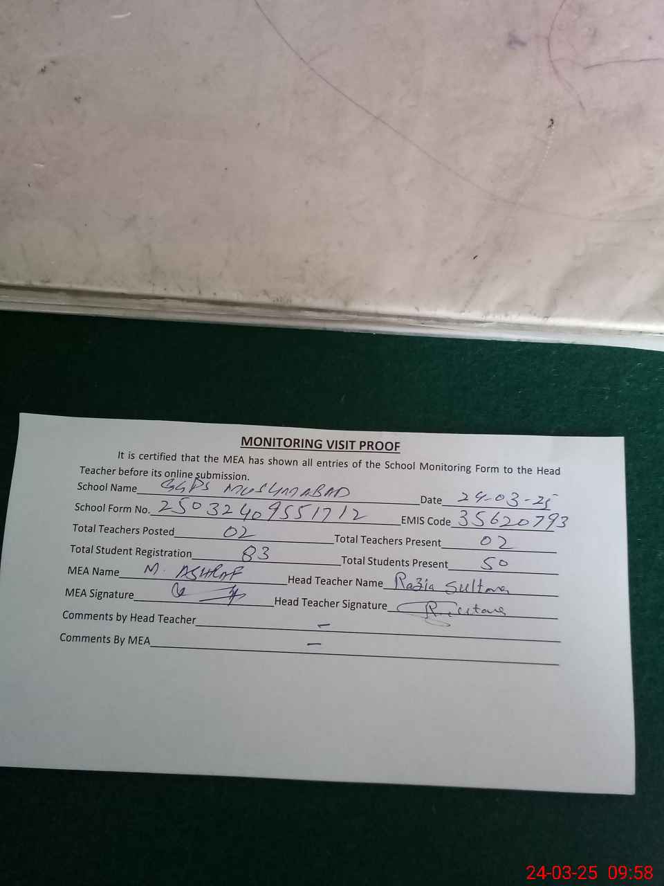 | EMIS Code: 35620793 | Name of School: GGPS MUSLIM ABAD | |||
