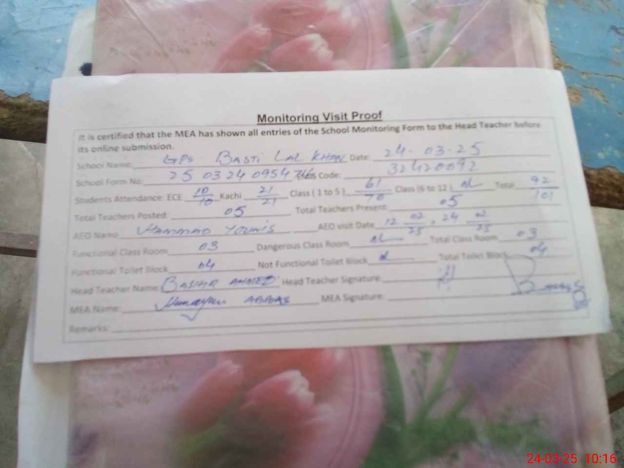 | EMIS Code: 32420092 | Name of School: GPS BASTI LAL KHAN | |||