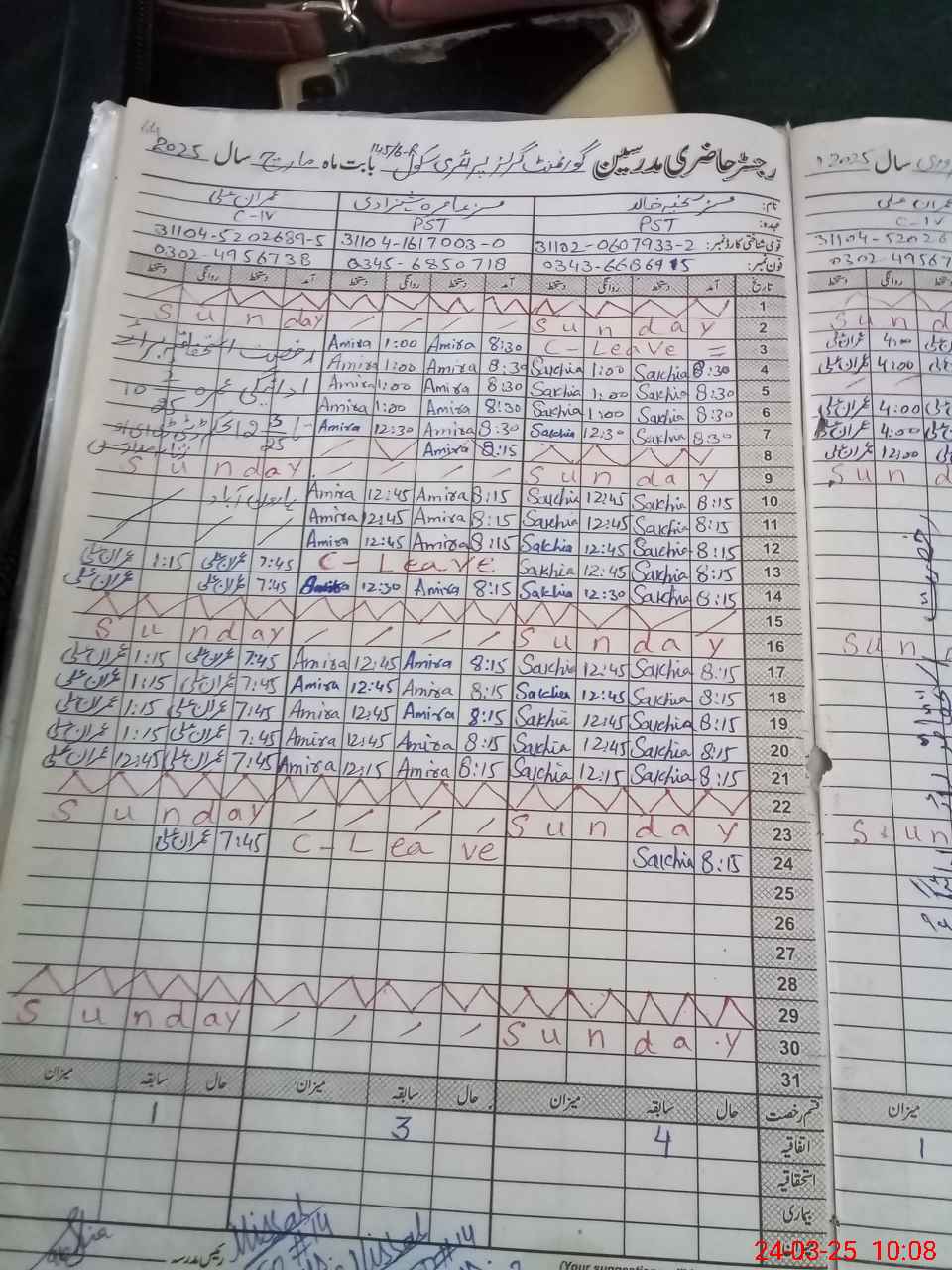 | Leave | Duty | Absent | Maternity | Medical | Ex- Pak |