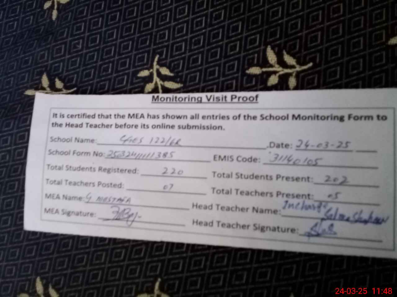 | EMIS Code: 31140105 | Name of School: GGES CHAK 122/6-R | |||