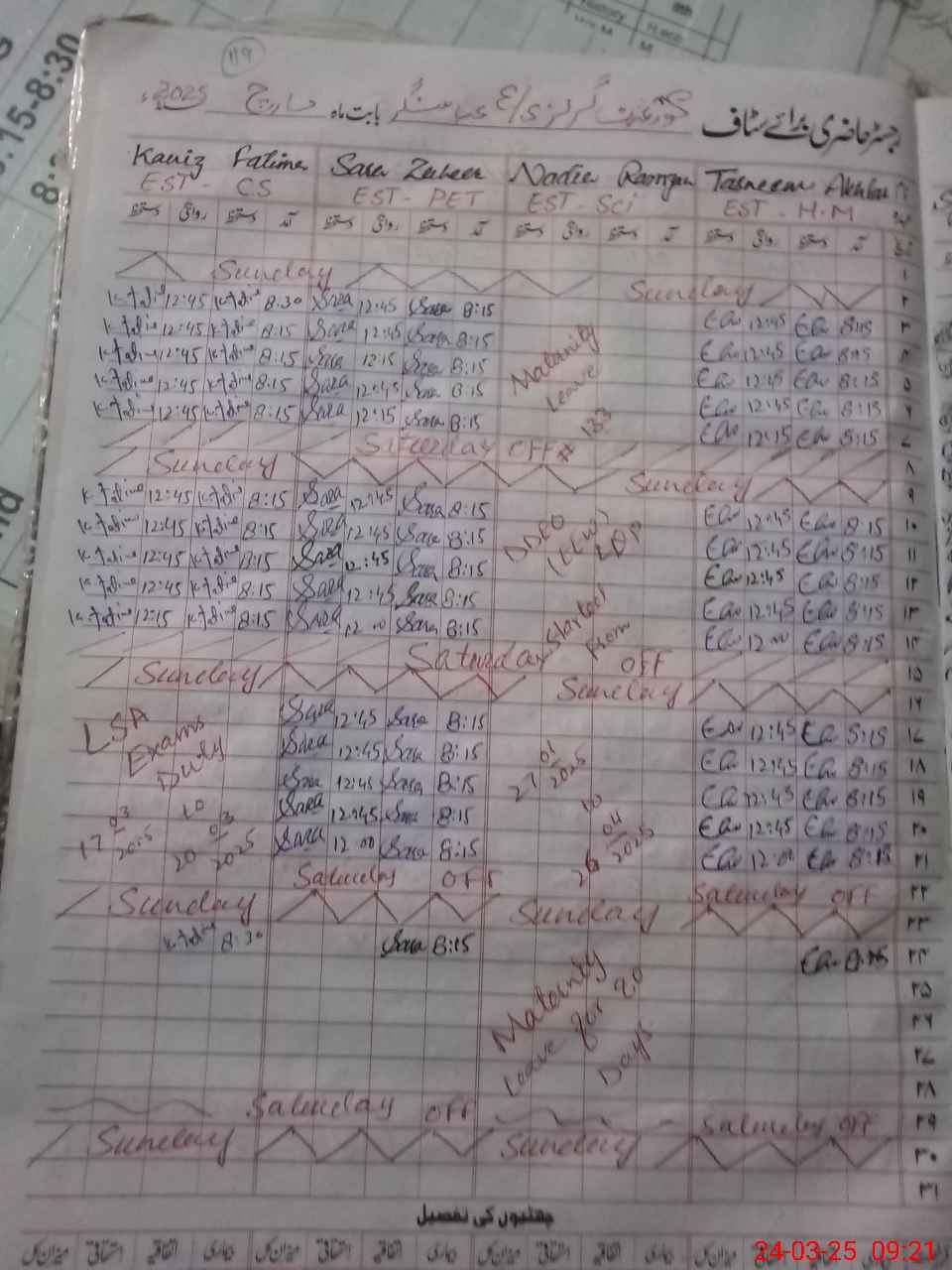 | 31**** | Na**** Ra**** | EST | Regular | 0 | 0 | 0 | 0 | 0 | 0 | 0 | 0 | 0 | Maternity |