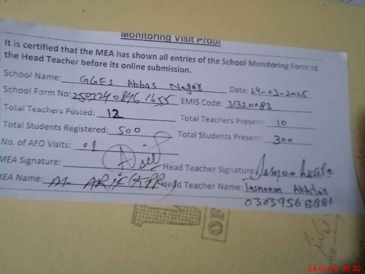 | EMIS Code: 31320083 | Name of School: GGES ABBAS NAGAR | |||