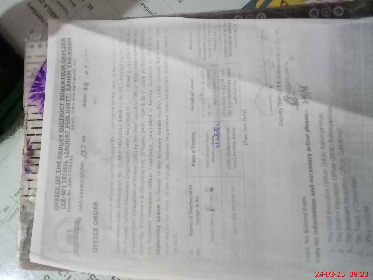 | Name: NA**** AK**** Designation: (School Headmaster's/Headmistress's) S.S.T.(SC) Phone/Cell Number: 03**** |